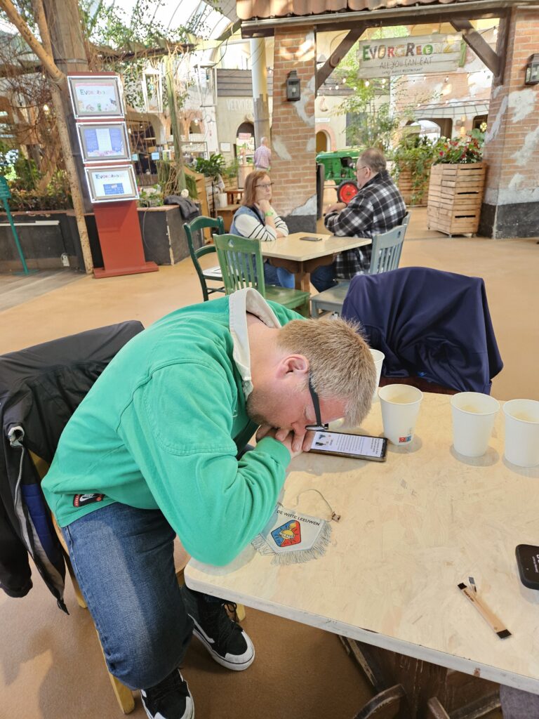 De Knager was met Noutje Buffels bezig met een ochtendsessie bulkdrinken. De klok slaat half 12 en het is op bij de Knager. Een tafeltje verder riep er nog wel iemand “Héé ouwe bekokstover kom je een meermansie maken”!
